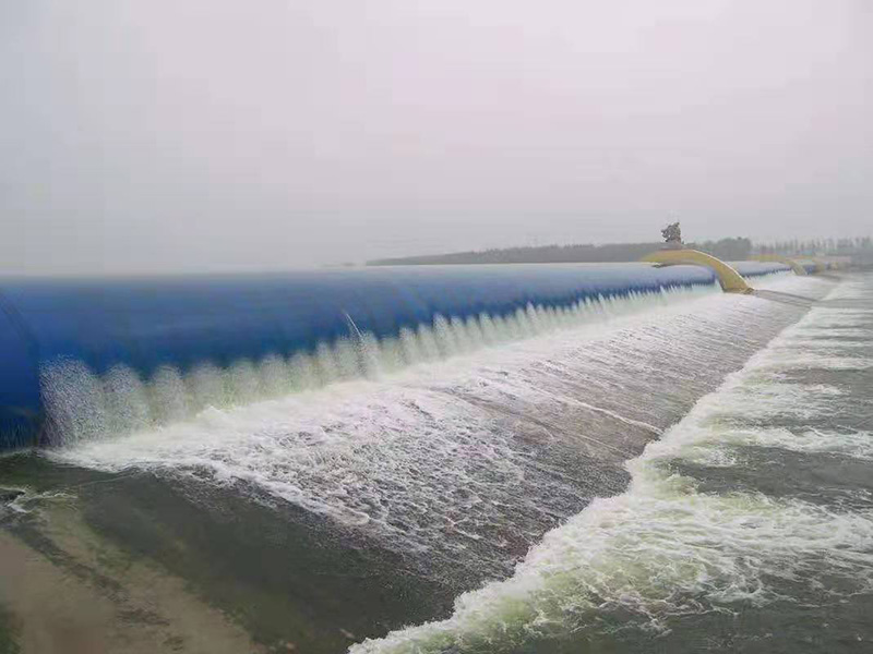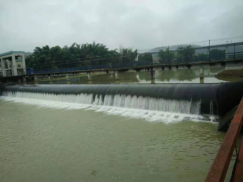 橡膠壩,又稱橡膠水閘,是用高強(qiáng)度合成纖維織物做受力骨架,內(nèi)外涂敷橡膠作保護(hù)層,加工成膠布,再將其錨固于底板上成封閉狀的壩袋,通過充排管路用水(氣)將其充脹形成的袋式擋水壩。壩頂可以溢流,并可根據(jù)需要調(diào)節(jié)壩高,控制上游水位,以發(fā)揮灌溉、發(fā)電、航運(yùn)、防洪、擋潮等效益。 橡膠壩主要適用于低水頭、大跨度的閘壩工程,如用于水庫溢洪道上作為閘門或